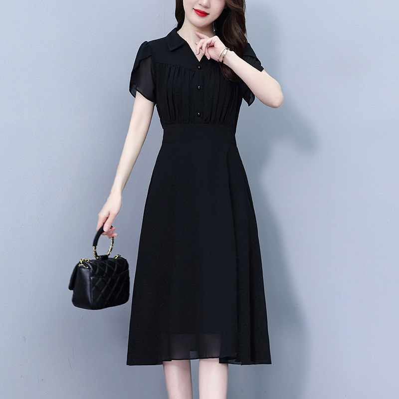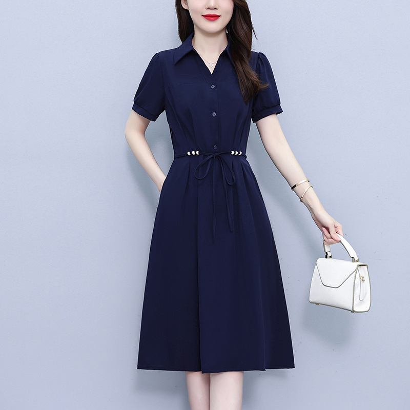 シャツ襟フレンチシフォンドレス半袖ファッショナブルなウエスト痩身気質西洋スタイルロングスカート女性の夏の新しいスタイル