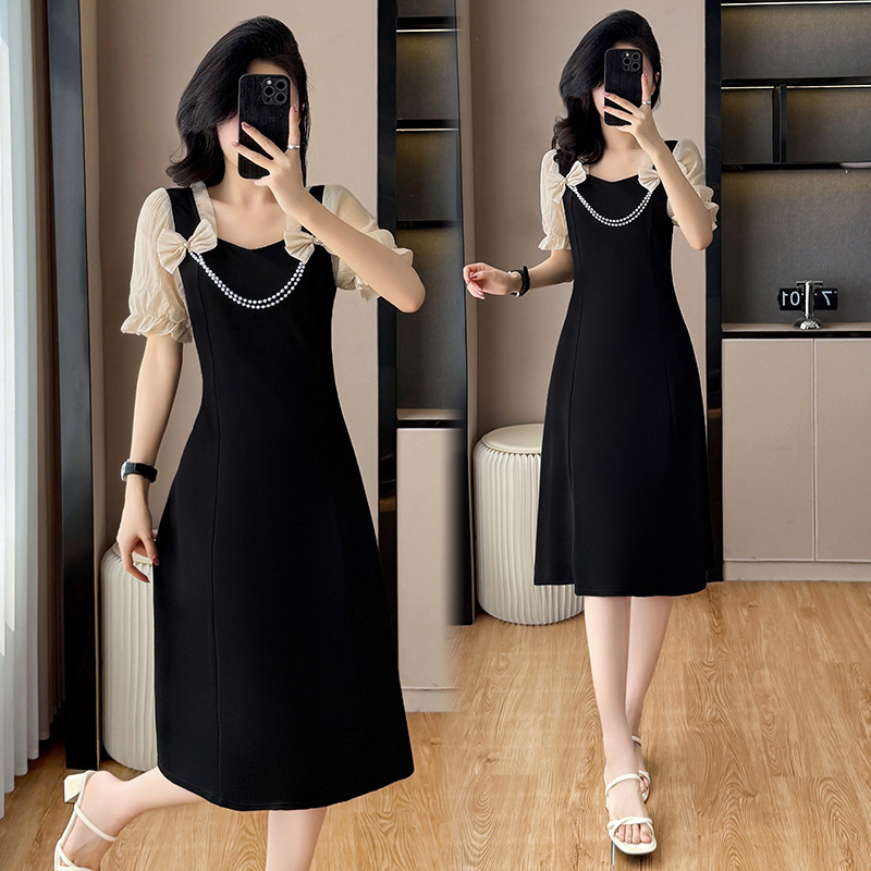 2025年夏の新作大きいサイズの女性用リボン装飾弾性お腹カバー痩身ドレス