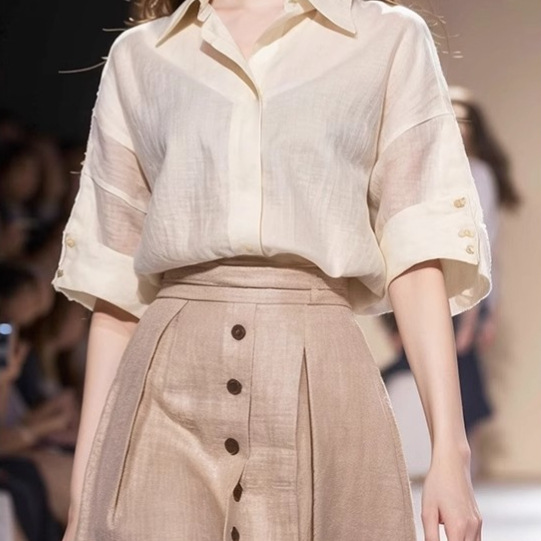 夏の服と綿麻のシャツのセットのファッションのカーキ色の亜麻のワンピースのスカートのスーツの2024新型の婦人服