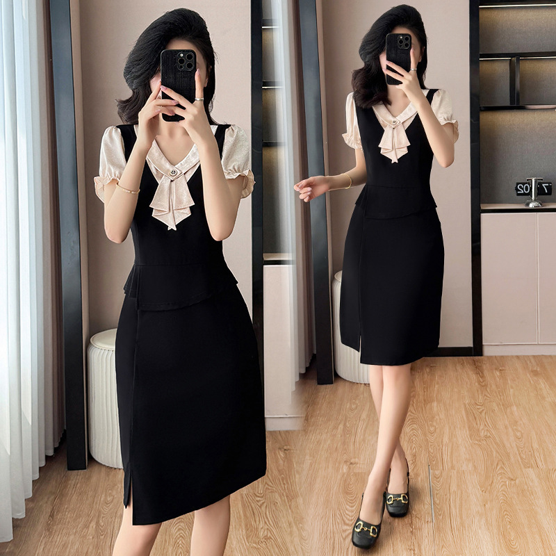 2025 新しいスプライシングスリムリボン小柄な人痩身夏薄い大きいサイズのドレス