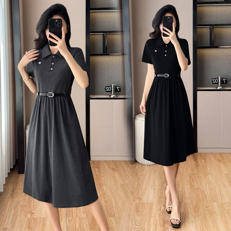 2025 新しい夏の少し太ったプラスサイズの女性のドレスヘップバーン黒スリムミドル丈スカート