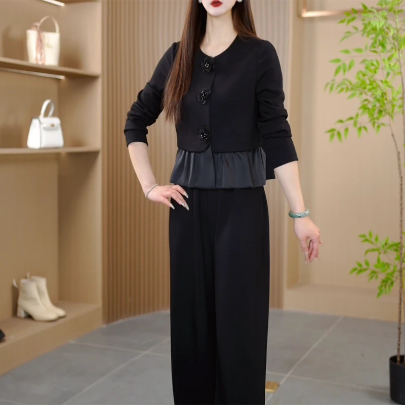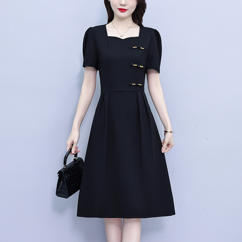 2025夏の新型の大きいサイズの婦人服の中国式のボタンの方の襟のファッションのヘボン風の黒色のワンピース