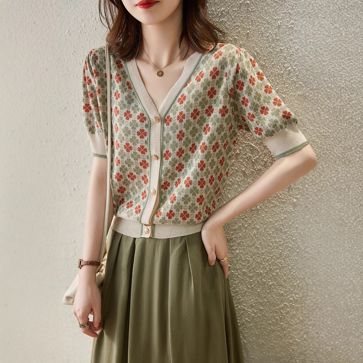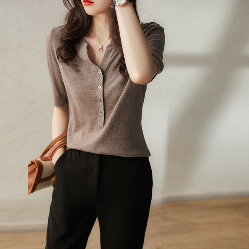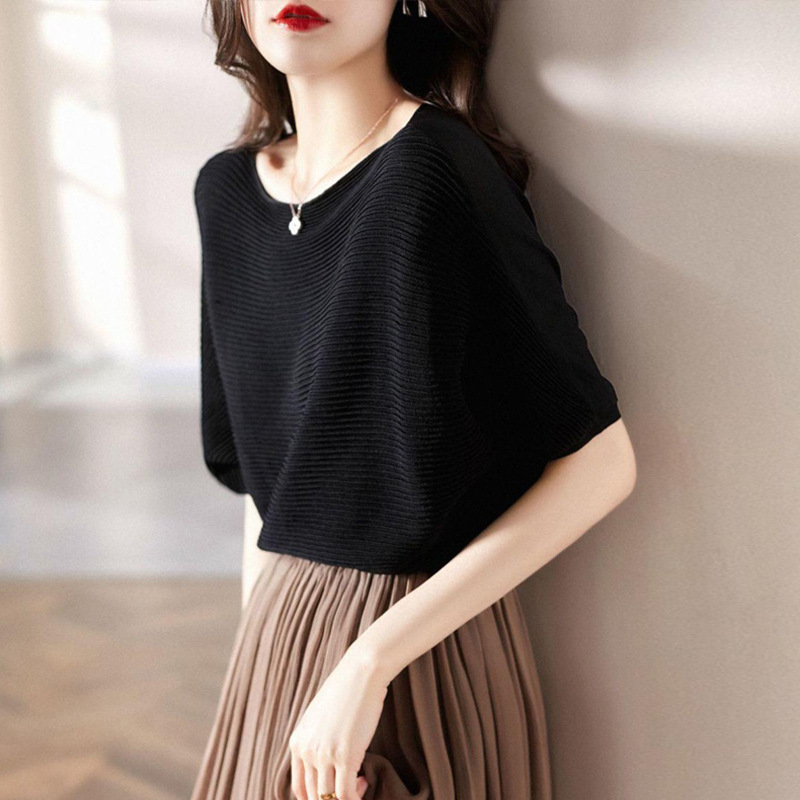 気質半袖tシャツ女性ニットカーディガン精紡ウール上着半袖夏新作ボトムシャツ薄いタイプがゆったりしています。