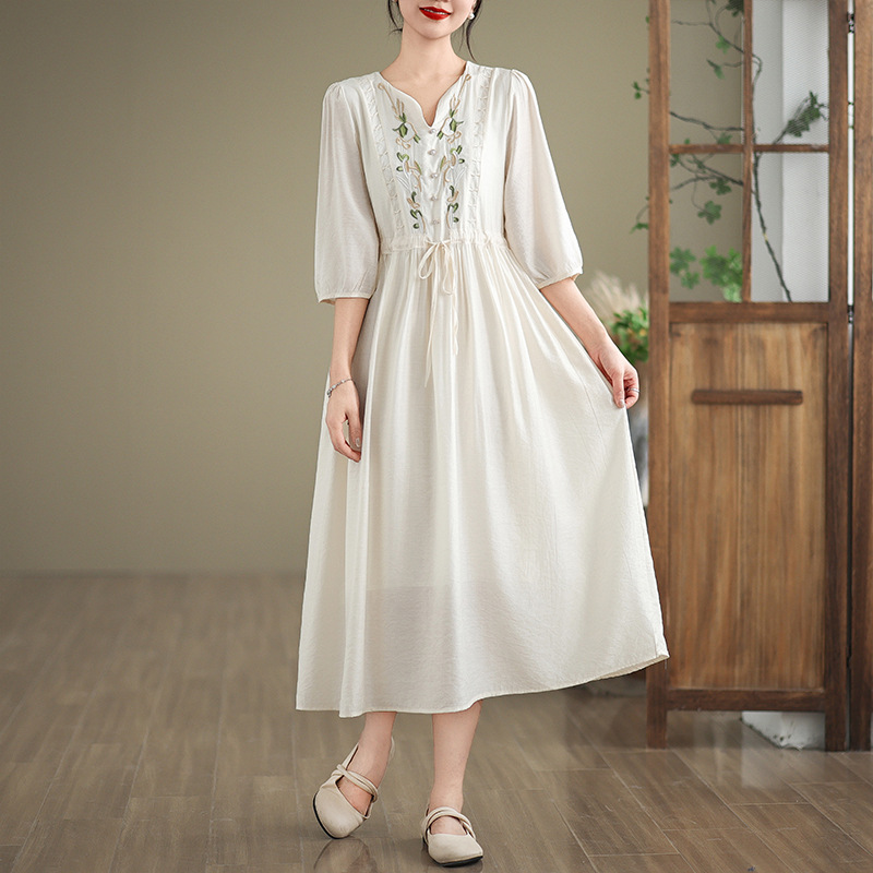 実写新中国式国風重工刺繍ワンピース2024夏の新型ゆるい痩せた気質刺繍ドレス女