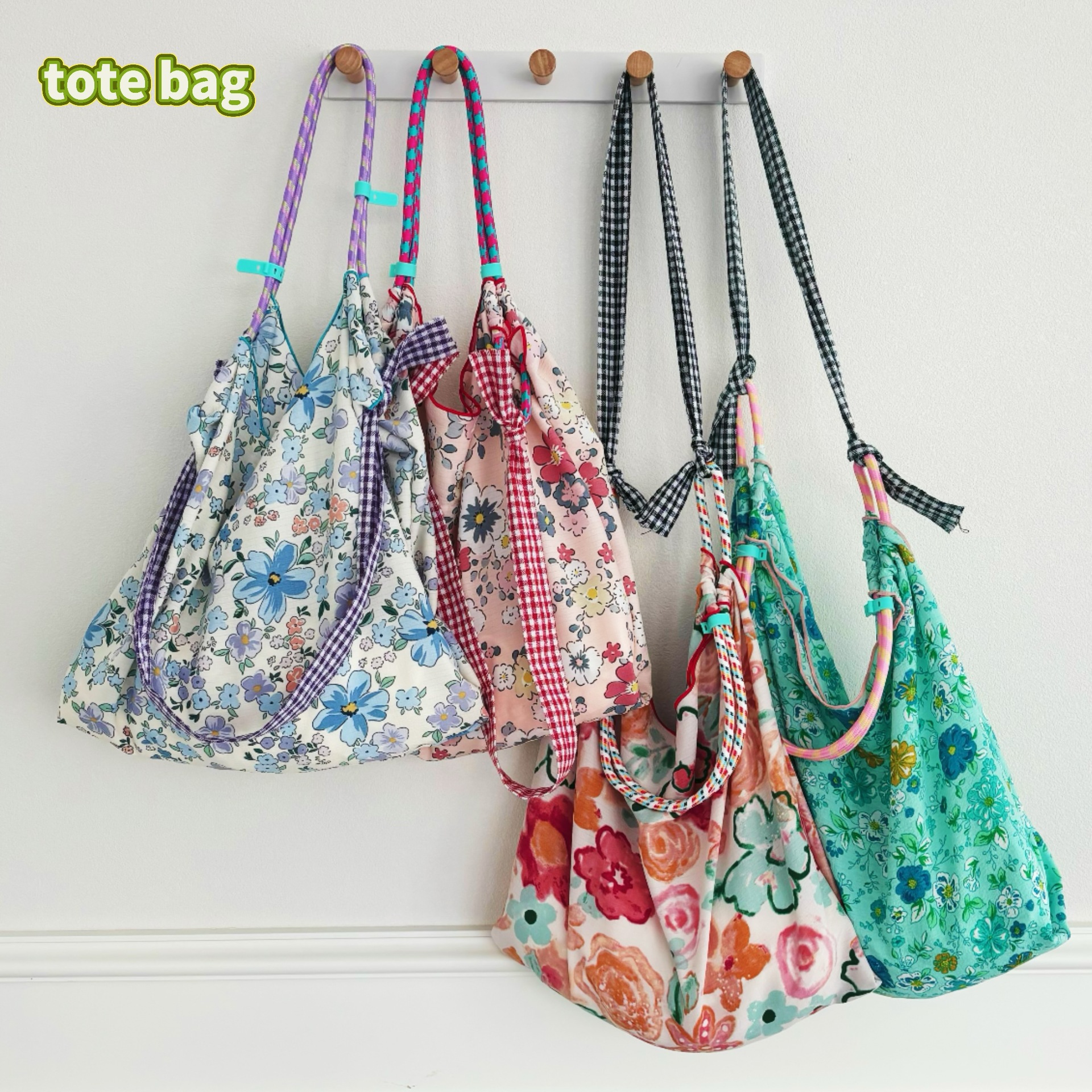 新しい小花柄巾着キャンバスショルダーバッグ大容量収納袋薄型イントートバッグレジャー旅行
