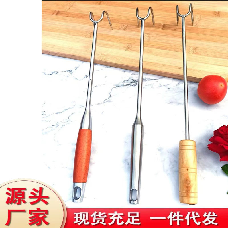 肉のフックのステンレスの木の柄は肉のフックをつかんで、豚肉のフックを焼きます。