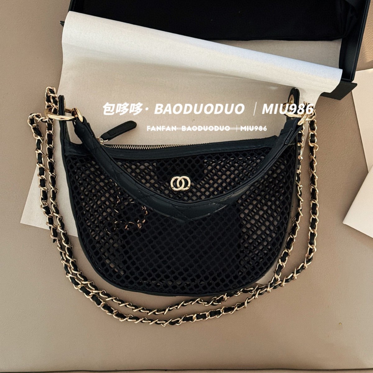 Xiaoxiangfeng 25S 編み込み中空三日月バッグハイエンド本革ショルダーポータブルクロスボディチェーン中空メッシュバッグ