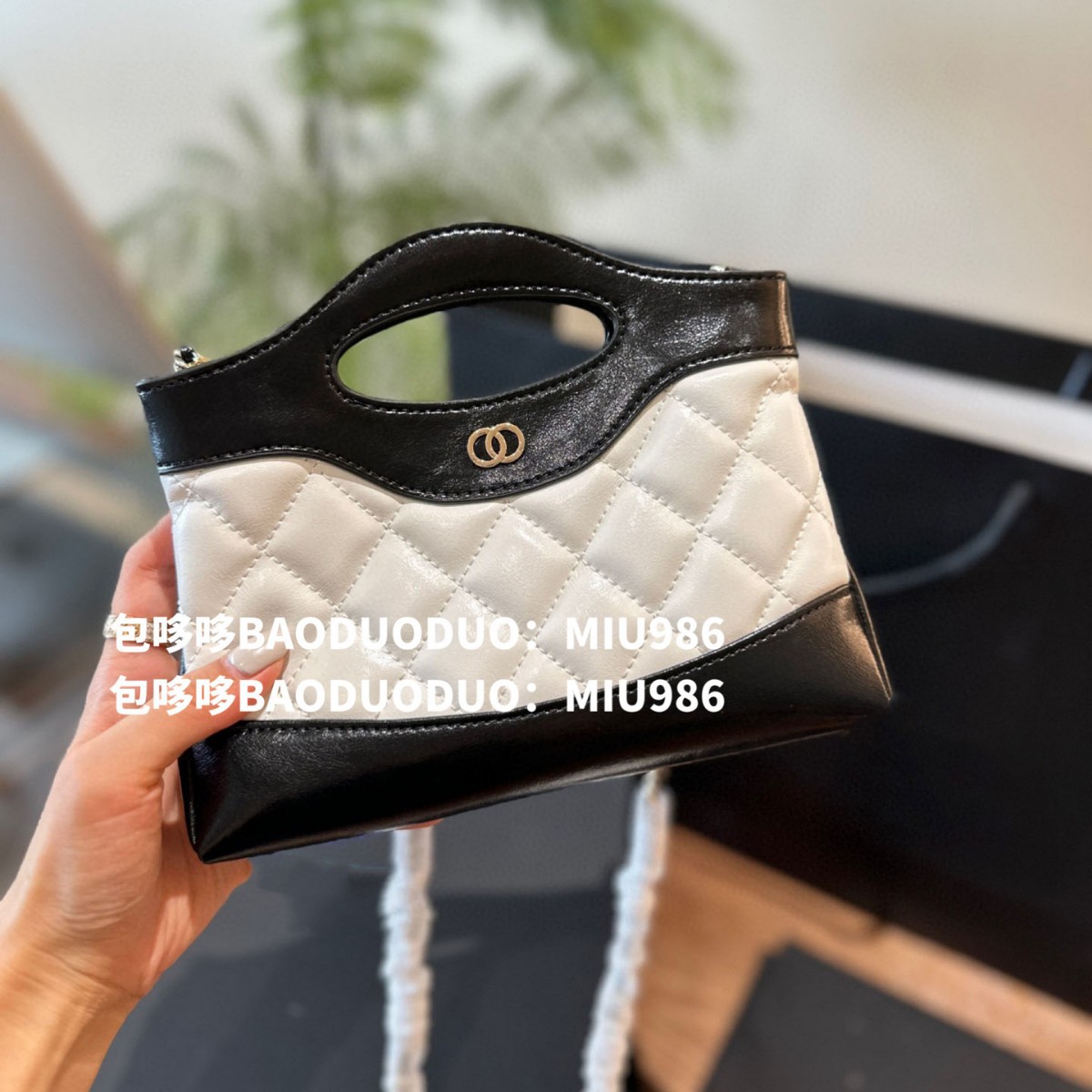 アップグレード版24b新型小香風31bagパンダnano白黒mini菱格チェーン手提げ斜めがけバッグ