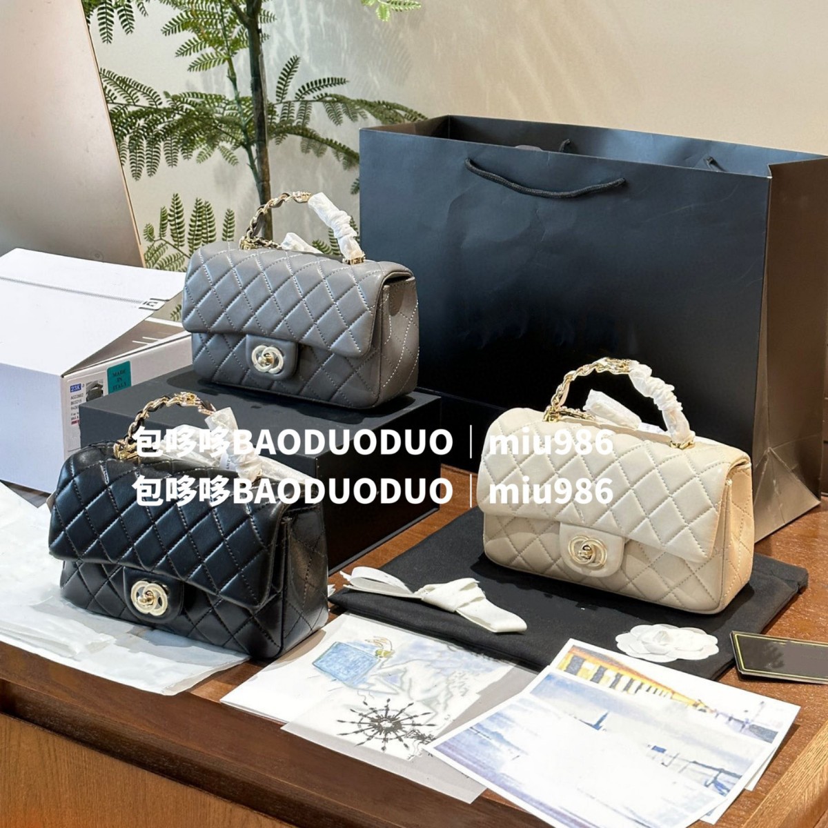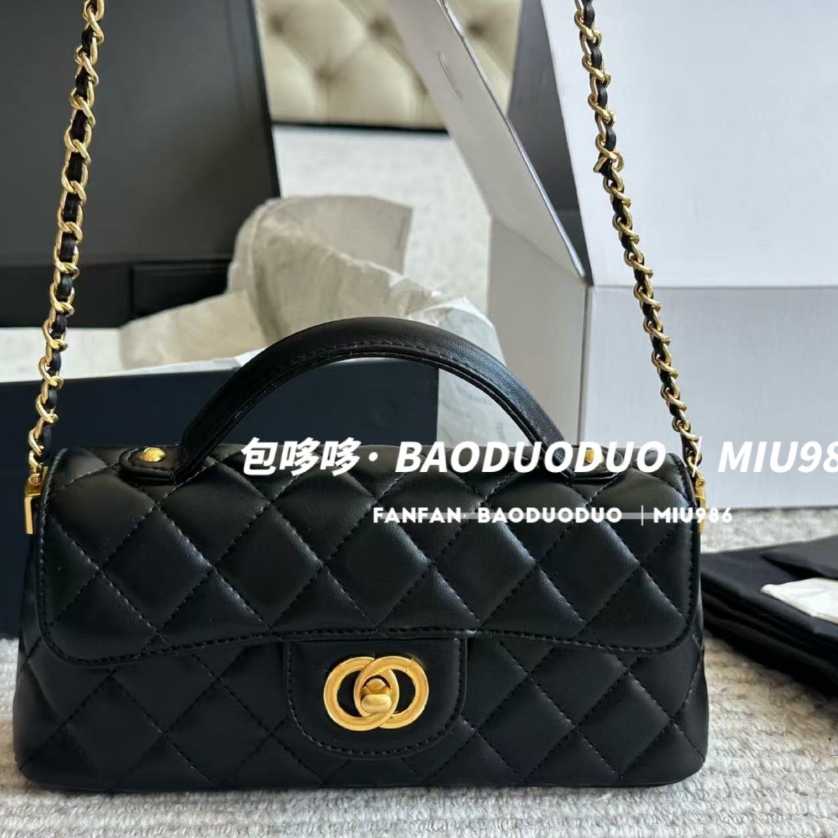 2025新型小香風25p横版ケリーハンドル菱格チェーン口蓋バッグシングル肩手持ち斜めがけバッグ