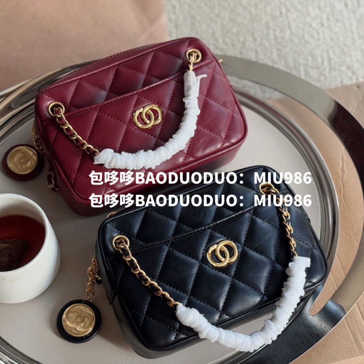 小香風24k新型バッジ金貨カメラバッグ脇下包菱格チェーンファッション百合斜めシングルショルダーバッグ