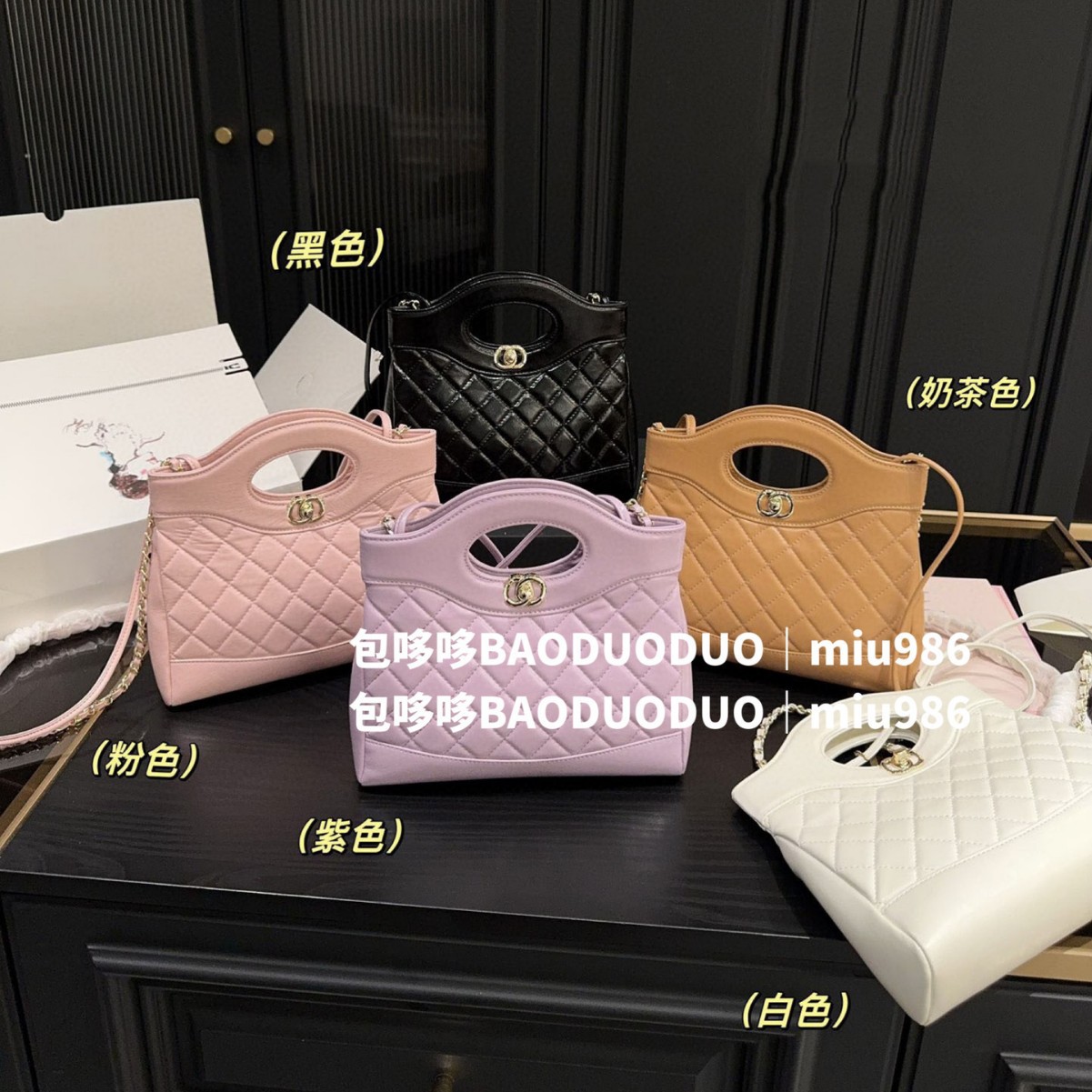 24s新型小香風31bag高級感レトロ菱格油蝋皮真皮チェーン手提げシングルショルダーバッグ