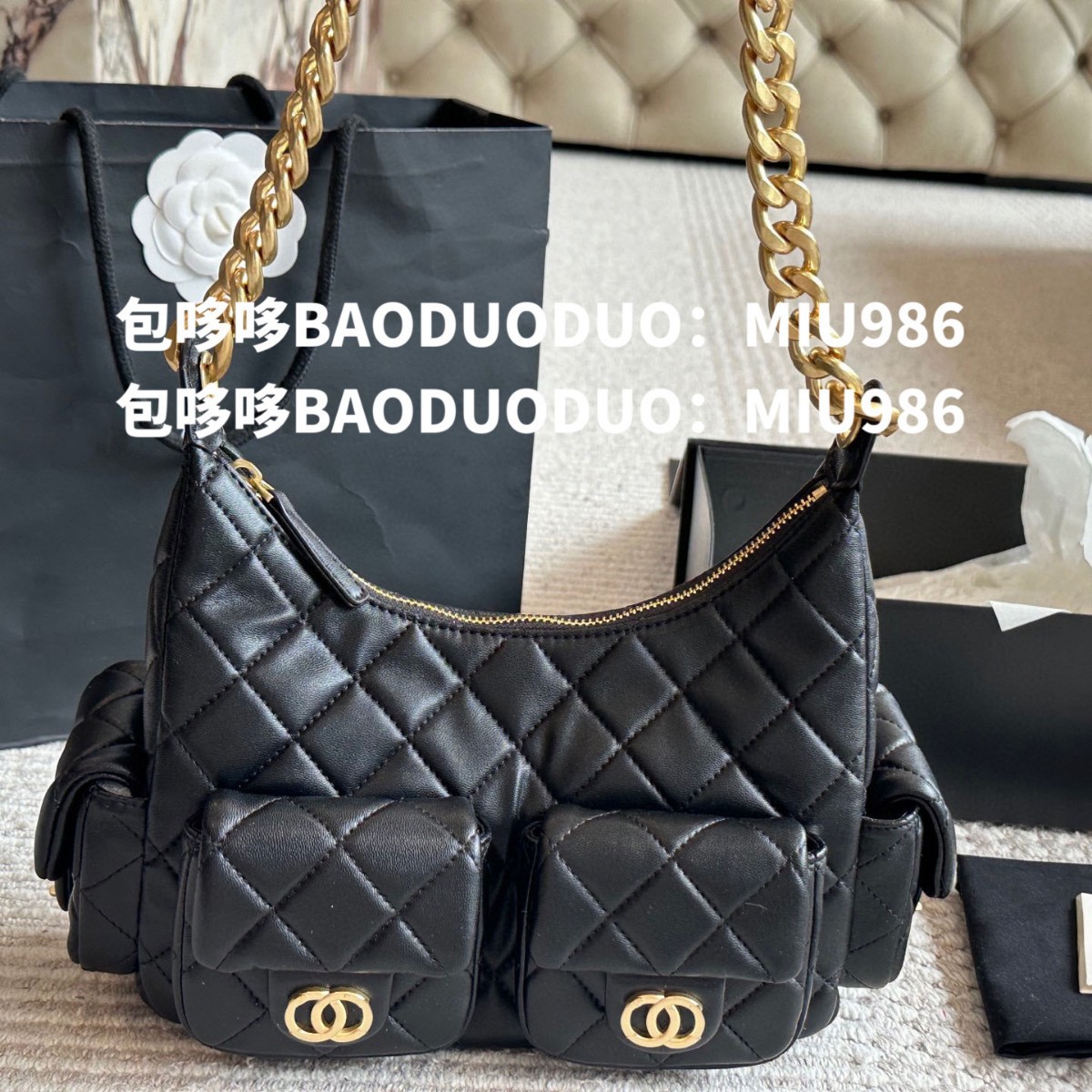 25Cヒッピーバッグ太いチェーンhobo多ポケット机関车バッグ小香风菱格チェーンバッグ本革脇下バッグ