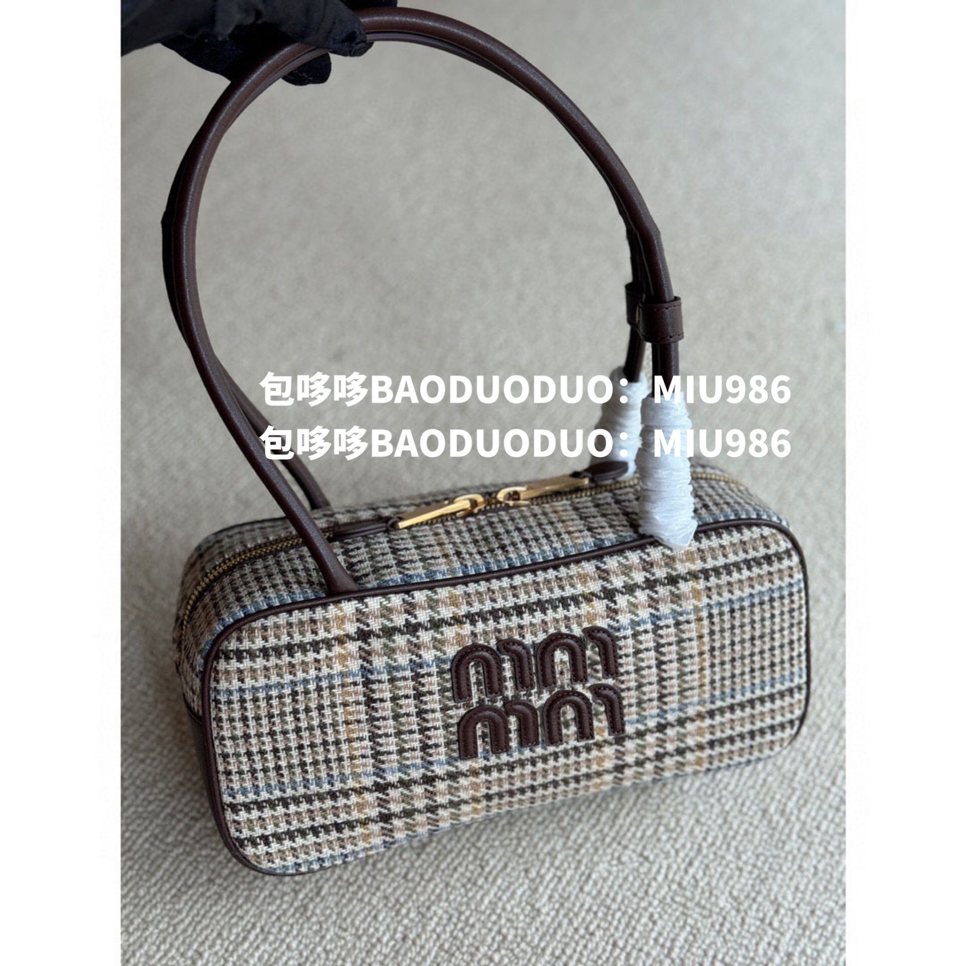 24秋冬新作ロングハンドル千鳥格ボーリングバッグレトロファッション