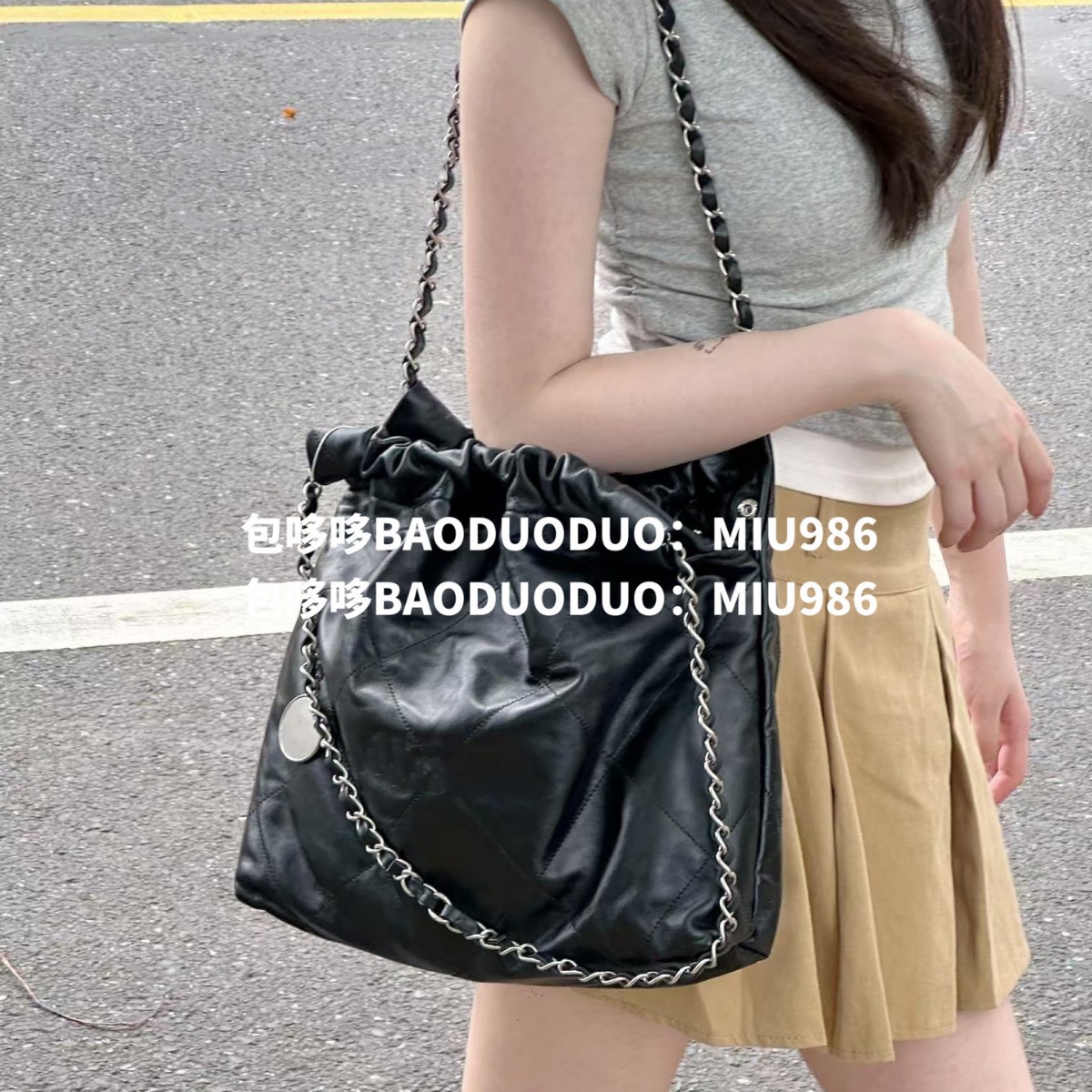 2024小香風22bagゴミ袋子母包菱格チェーン片肩斜め掛けレジ袋トート大容量