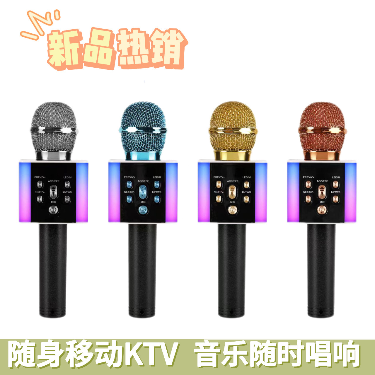 2024新型マイクbluetooth音響角型無線k歌マイクMC880自慢灯付きクロスボーダープレゼント