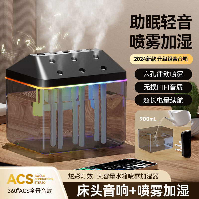 2024クロスボーダー加湿器ブルートゥースオーディオ一体型家庭用オフィススプレー加湿器雰囲気ランプブルートゥーススピーカー