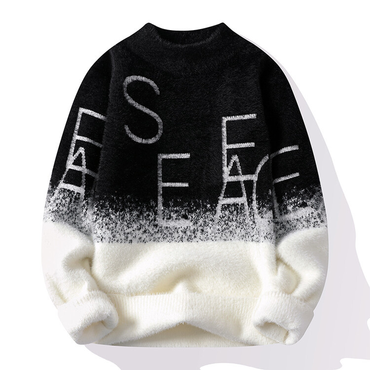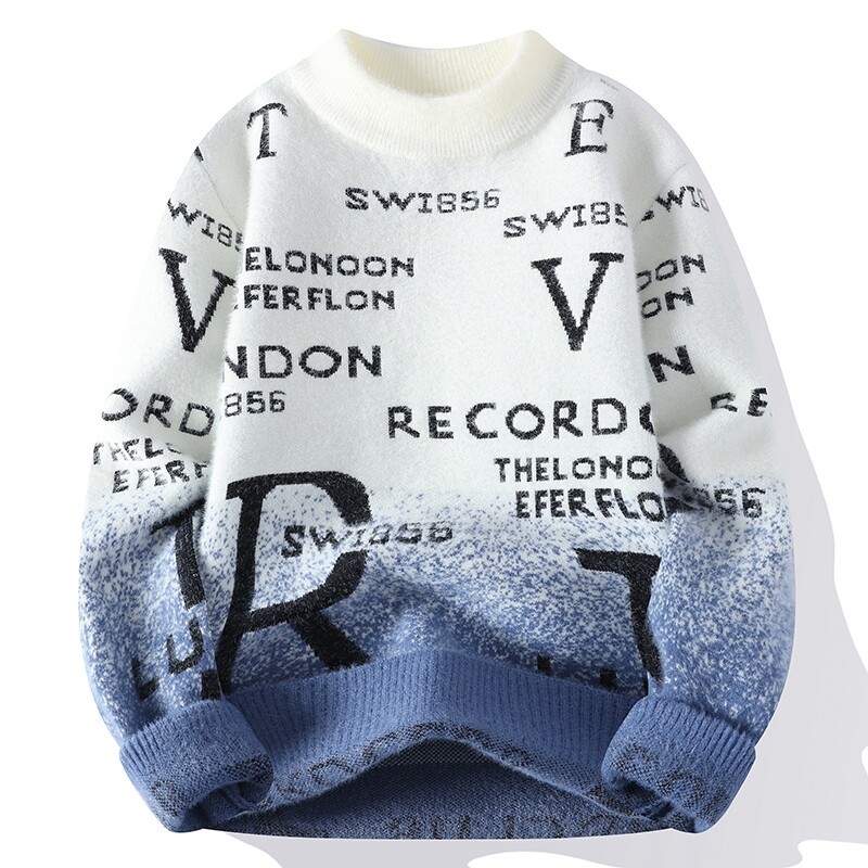 秋冬の新型セーター男性ニットのゆったりとしたカジュアルなアルファベットのグラデーション