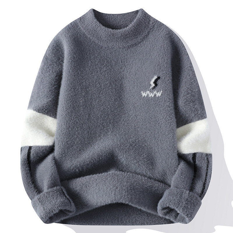 工場直販クロスボーダー熱売ミンクパイル厚手丸首セーター男性用ニット大量現物