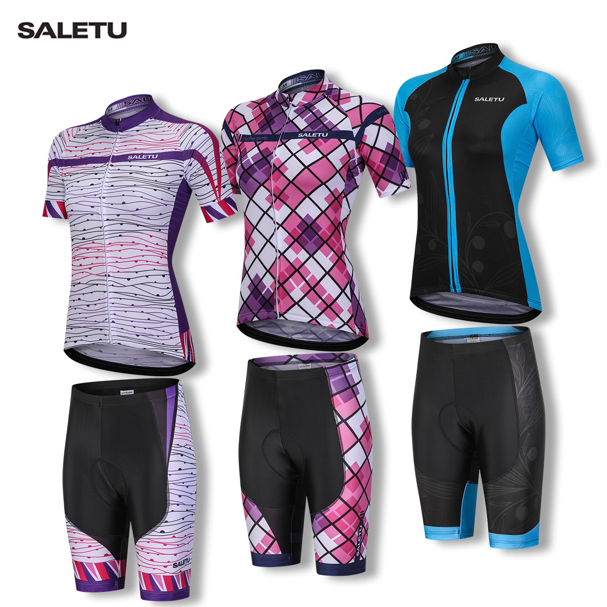 Saletu夏自転車スポーツロードバイク速乾通気性プリント半袖ショーツストラップセットレディース