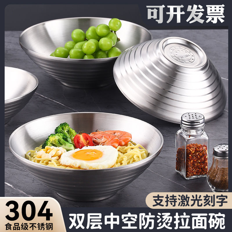 304ステンレス鋼のナットの粉の碗の大容量の食品級のラーメンの碗の笠の商用の二重は熱を防ぎます