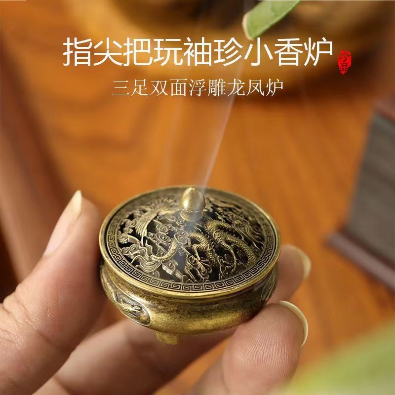 模造銅香炉家庭用屋内アロマクリエイティブ指先プレート茶道アロマセラピー炉レトロ三脚龍と鳳凰炉