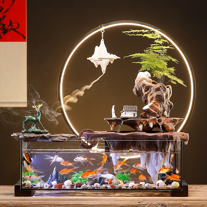 クリエイティブな水交換不要のエコガラス水槽造園岩流装飾品循環水リビングルームオフィス装飾