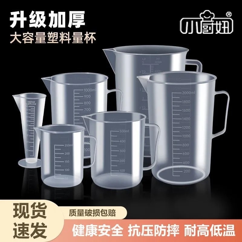 食品グレードの厚みのあるプラスチック計量カップ、スケール付き、ベーキングミルクティーショップ計量カップ、蓋付きビーカー