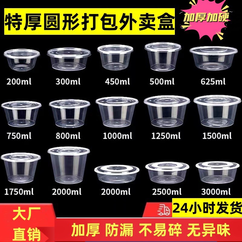 丸型使い捨て弁当箱、透明増粘テイクアウト包装箱、丸型ボウル、業務用弁当箱、蓋付き弁当箱