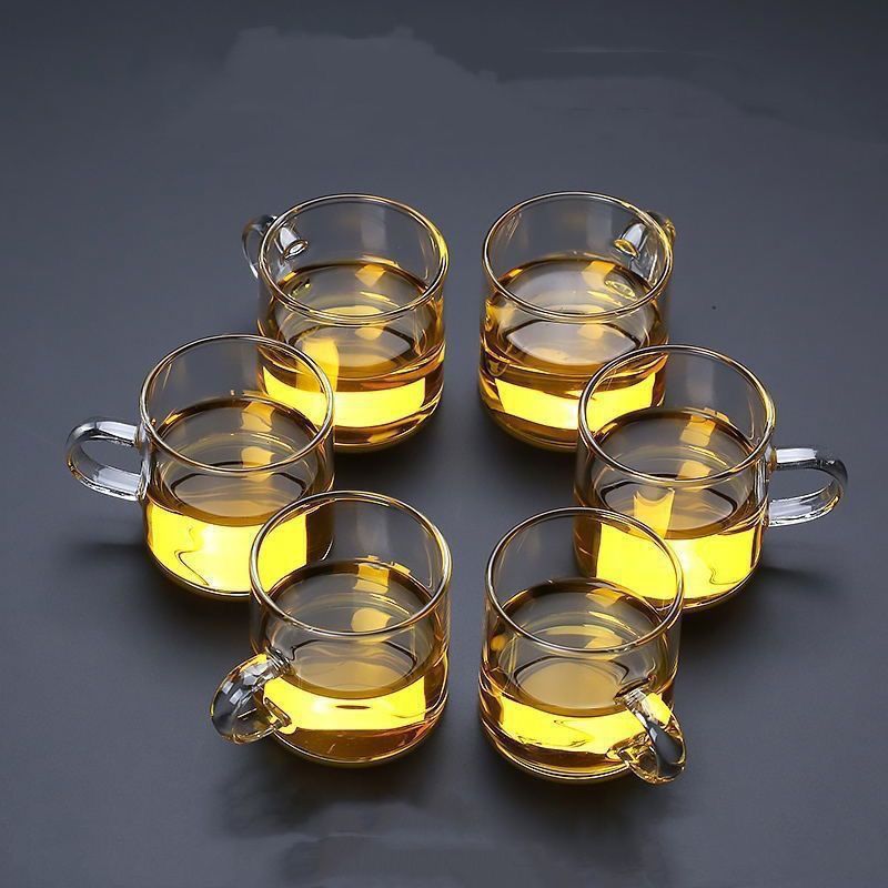 ガラスカップセット家庭用約透明耐熱厚手品茗工夫具セット碗独立駅