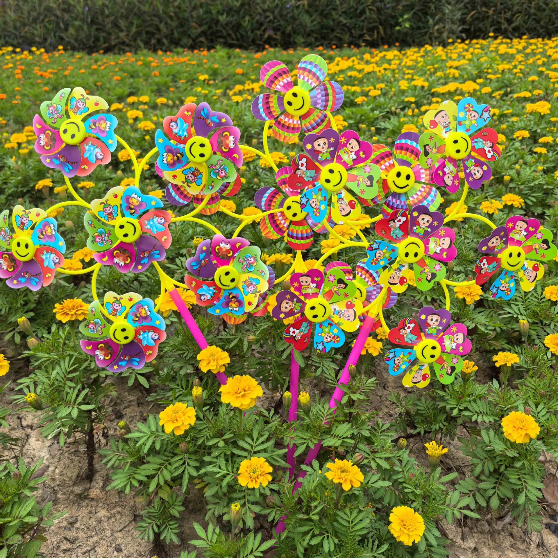 カラフルな漫画風車屋外装飾プラスチックおもちゃカラフルな回転レイアウト雰囲気小道具ハンドヘルド小型風車
