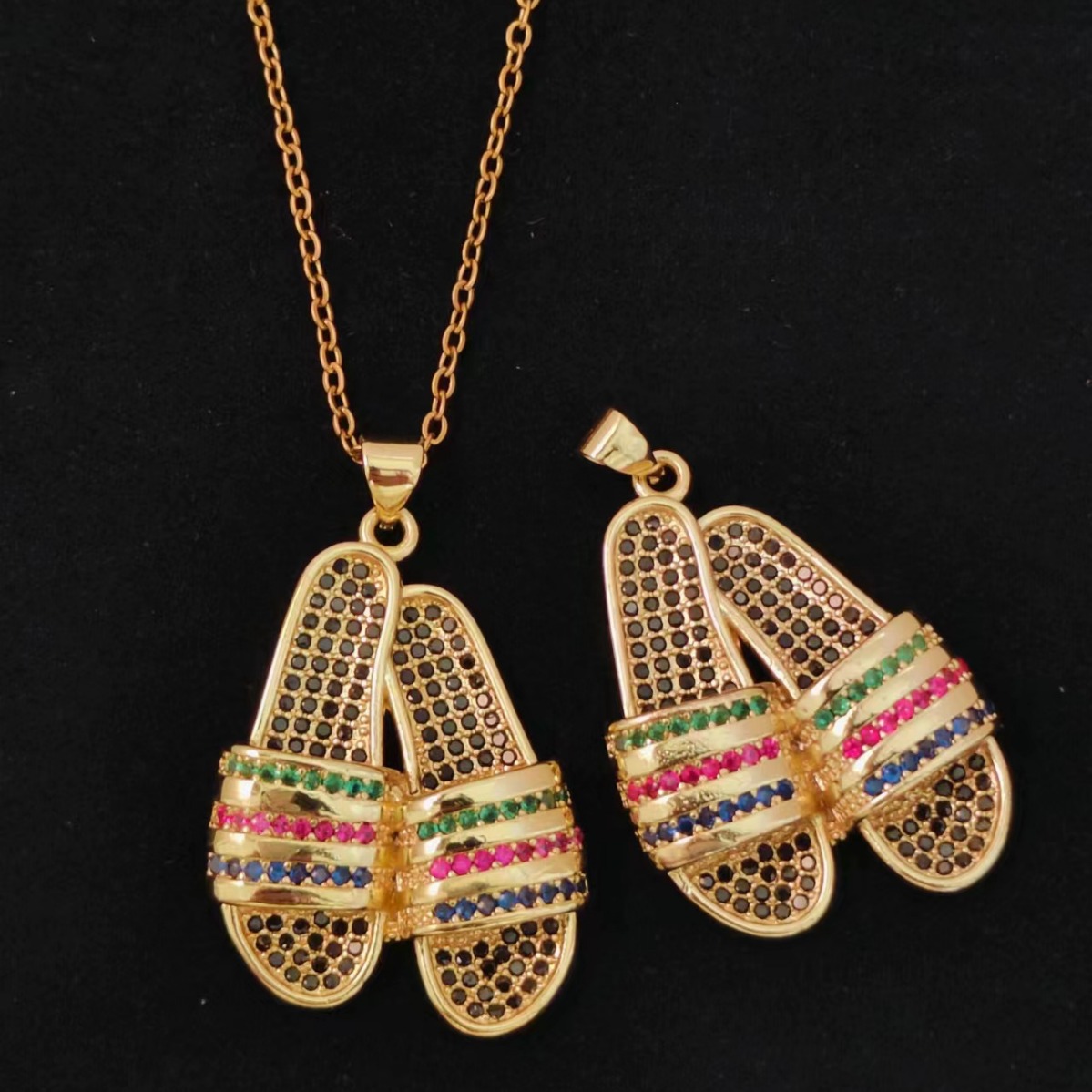 国境を越えて人気のある欧米のトレンドヒップホップ銅マイクロジルコンアクセサリー個性スリッパファッションペンダントネックレスアクセサリー