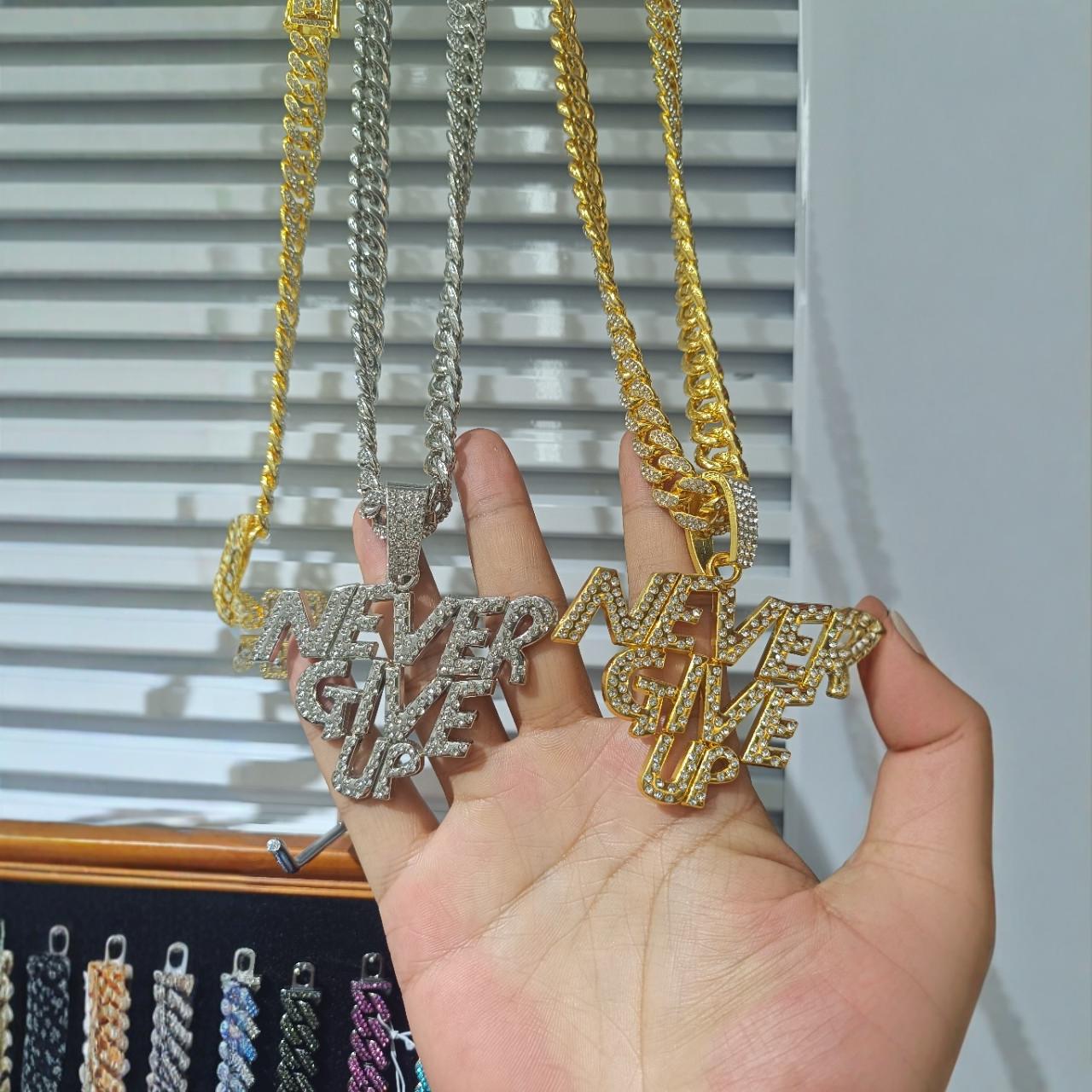 欧米の国境を越えた新しいネックレス合金はNEVERGIVEUPアルファベットペンダントスキューバチェーンhiphop