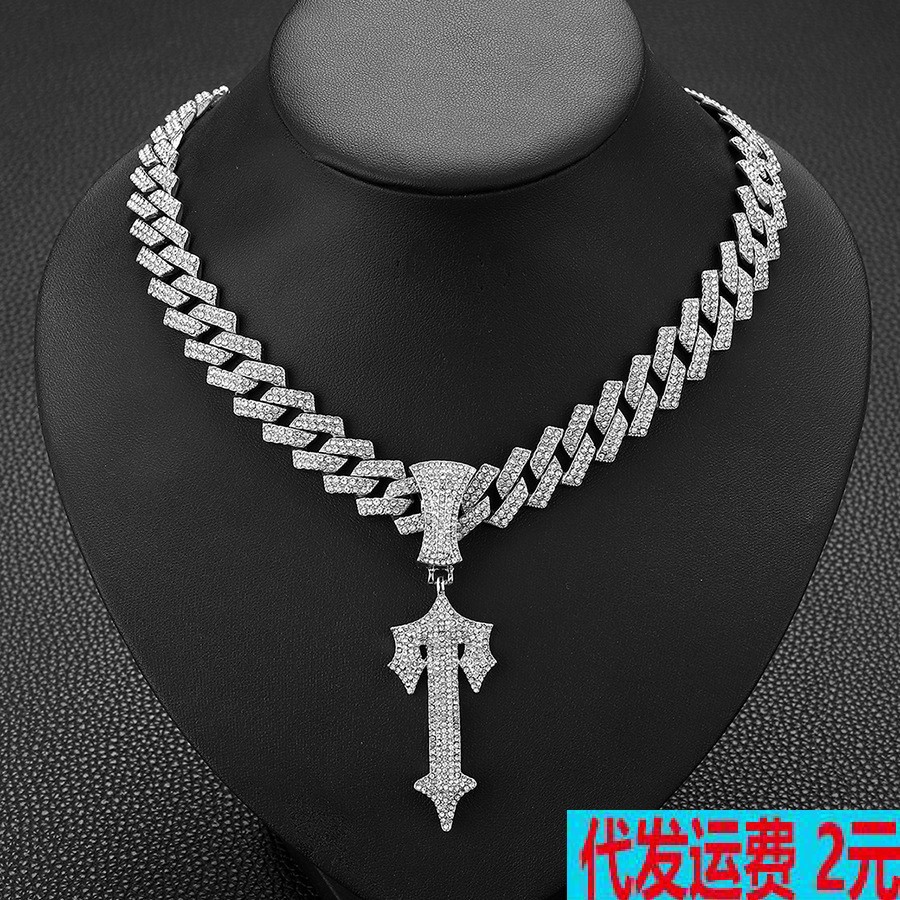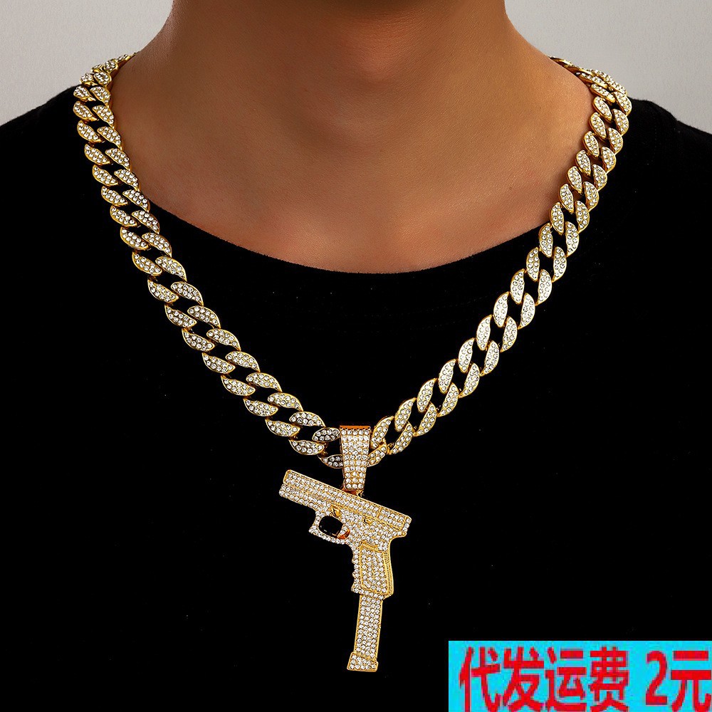 欧米の新商品の宝剣満ドリルペンダントヒップホップネックレス立体合金ヒップホップアクセサリーのクロスボーダー流行男性アクセサリー