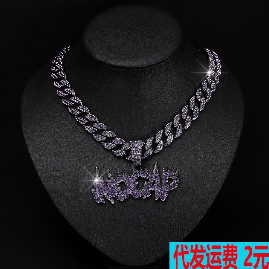 国境を越えた新しいファッション炎の文字NOCAP紫色のダイヤモンドペンダントヒップホップのレトロな個性的なネックレスペンダント