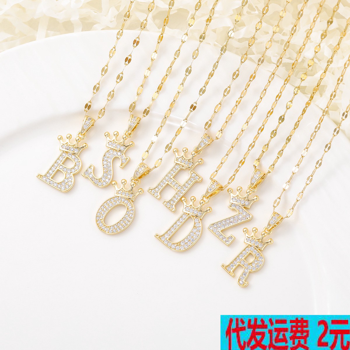 クロスボーダー熱売銅マイクロジルコンメッキ18k真金クラウンアルファベットペンダントins風26個英語アルファベットネックレス