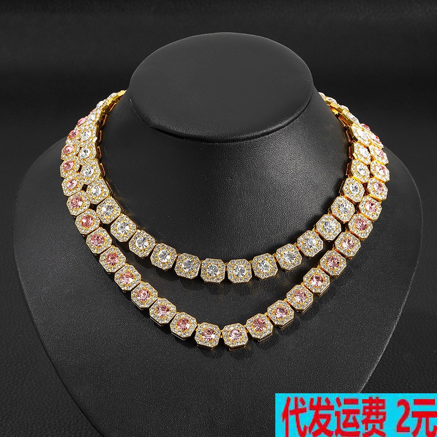 国境を越えたヒップホップ宝石合金氷糖キューバチェーンネックレス首鎖潮男潮女個性鎖骨方糖ネックレス
