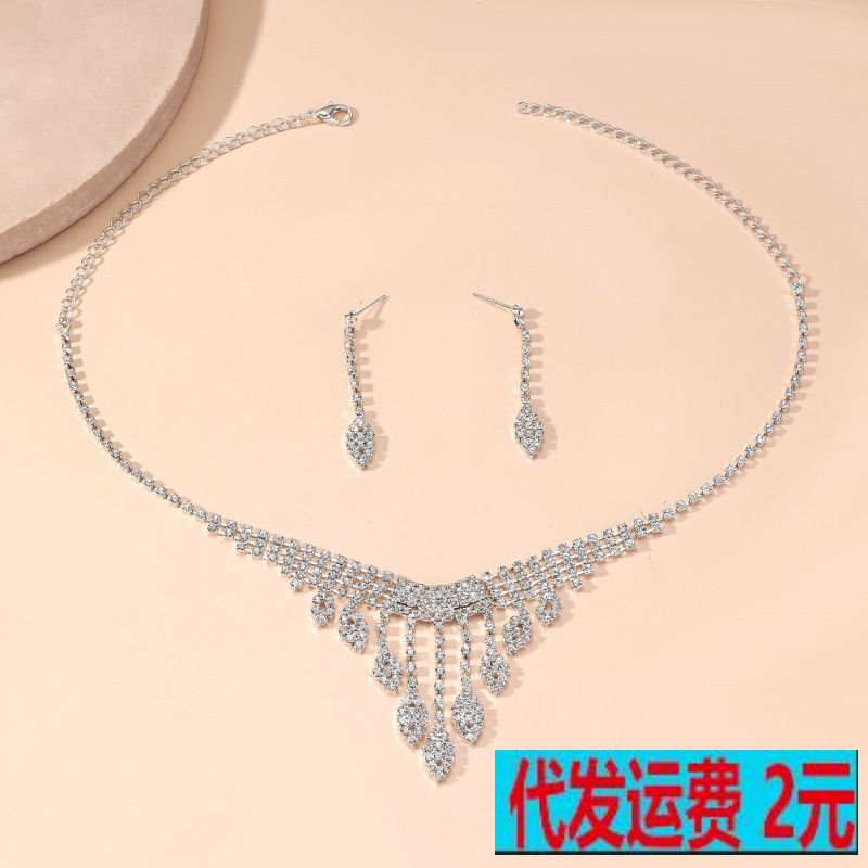 クロスボーダー欧米のフルドリルのフリンジの鎖のネックレスのイヤリングのセットの爪の鎖の水のドリルのフルドリルのドレスの百合のネックレスの女性