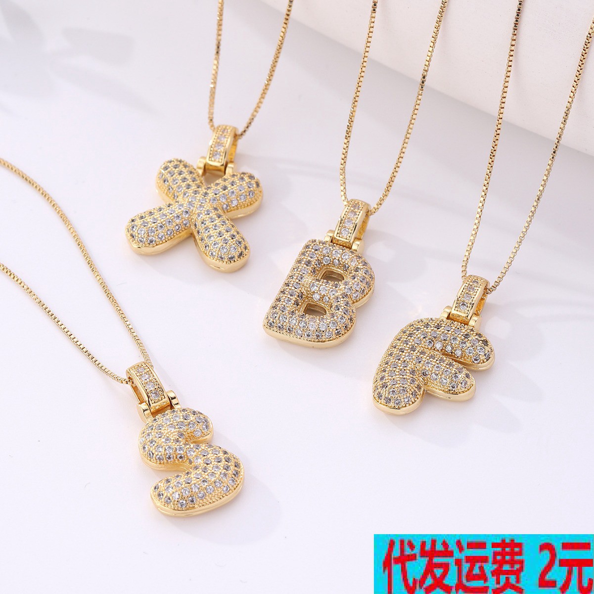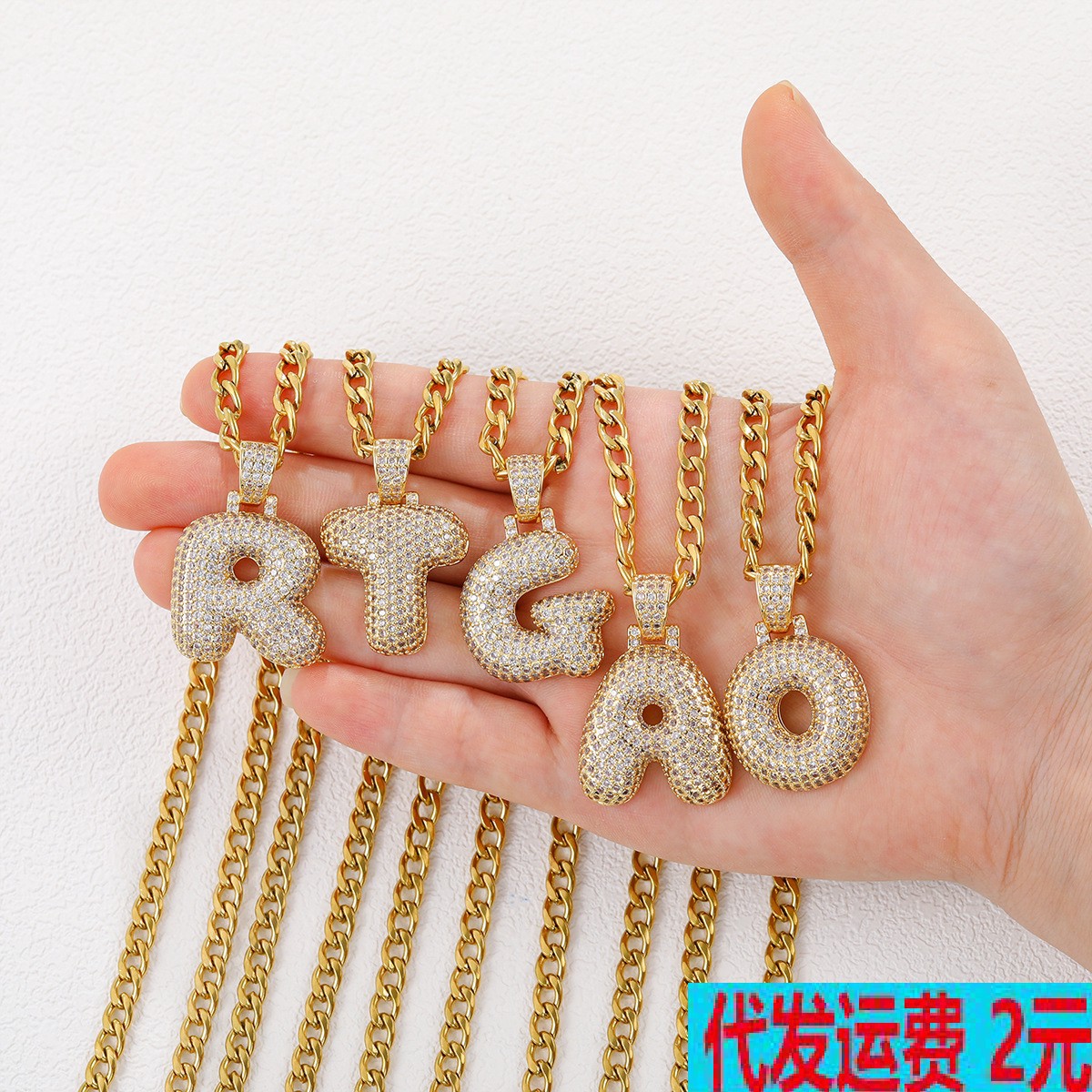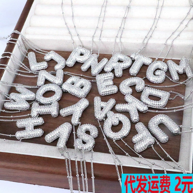 クロスボーダーの人気銅のジルコンの個性のヒップホップの26個の英語のアルファベットのペンダントのネックレスの太った風船のアルファベットの鎖