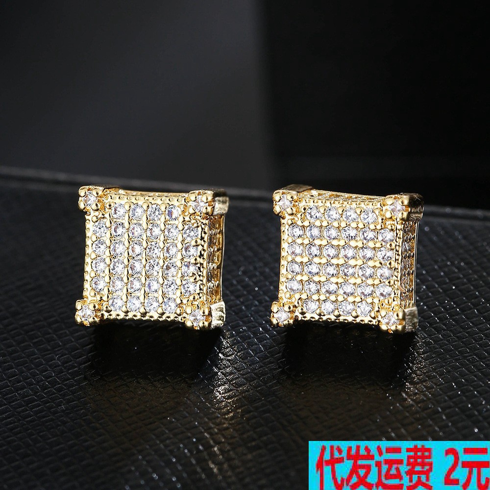 欧米の人気ヒップホップジルコンは、ピアスをつけた男性の潮人金メッキhiphopイヤリングが国境を越えた新しいアクセサリーです