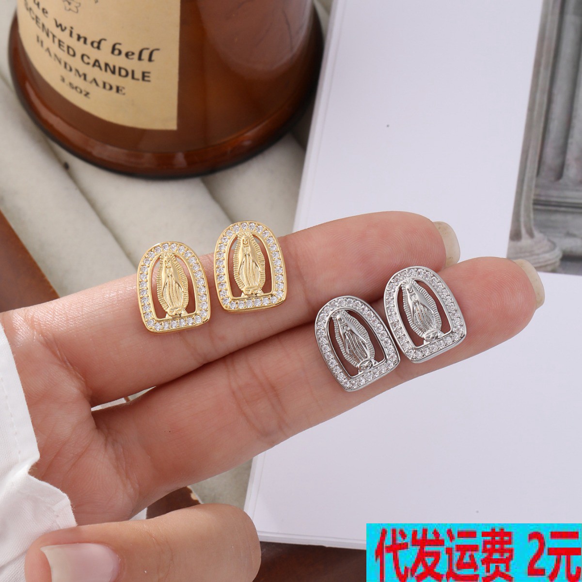 クロスボーダーのホット販売銅のジルコンの幾何学的な円形の聖母マリアのピアスのファッション的なレトロなイヤリングの女性