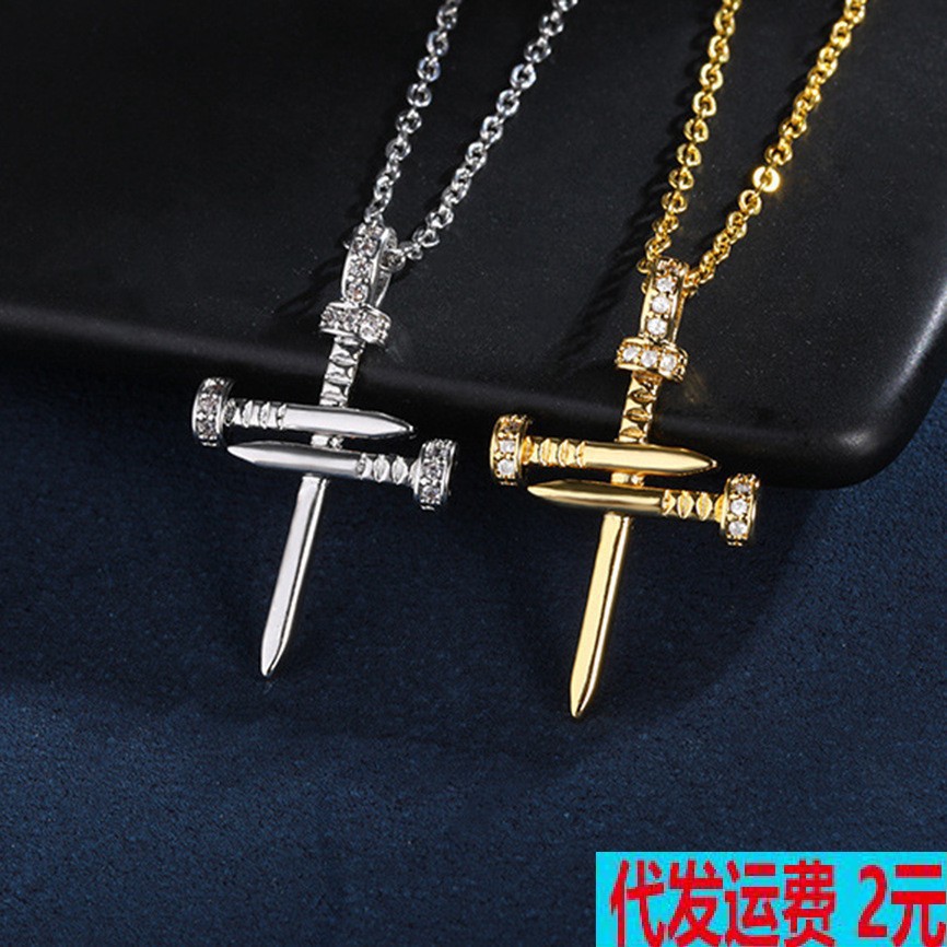 欧米の個性的なヒップホップの潮流の銅はジルコンの釘のクロスのペンダントのネックレスのinsを入れて簡単に鎖の鎖のネックレスを飾ります。