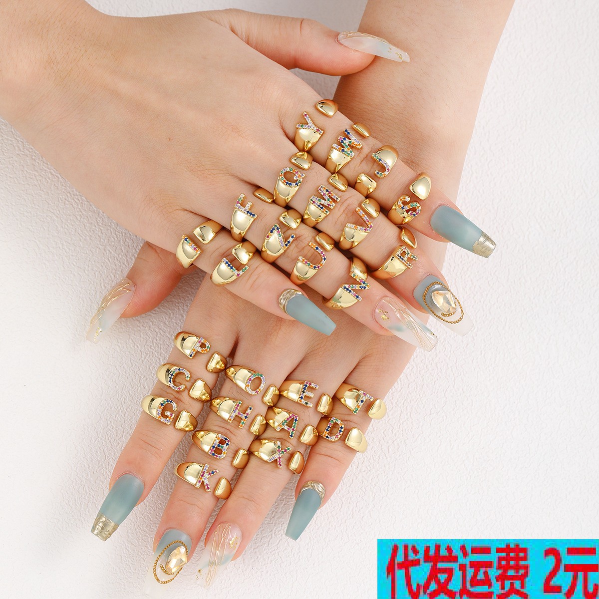 国境を越えたジルコンのアクセサリー銅には、カラージルコニウムの個性的なファッションが26文字の英字の開口指輪が調節できる指輪がついている