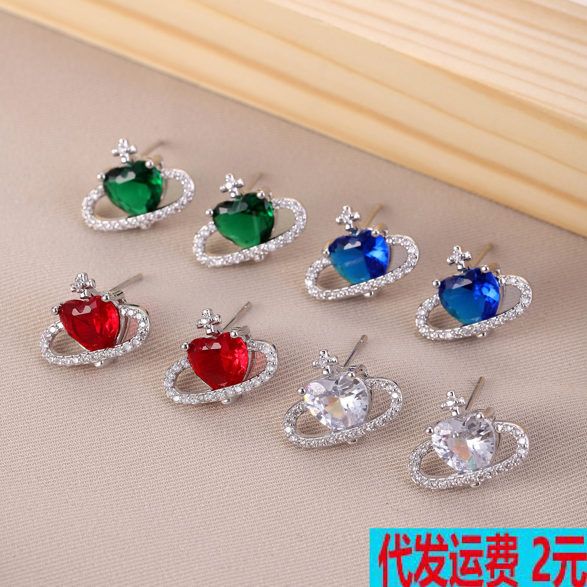 国境を越えたアマゾンの銅はジルコンの愛の星の小さい宇宙のピアスのファッションの個性の小さい大衆の耳飾りの卸売りを入れます。