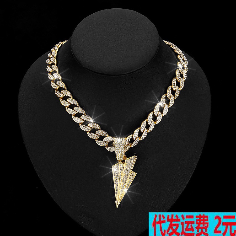 欧米のクロスボーダーのヒップホップの飛行機のキューバのネックレスの個性は男性の時の紙の飛行機のペンダントのスキューバチェーンの宝石です。