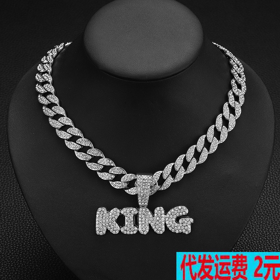 欧米の国境を越えた環境保護合金ヒップホップ街頭風満ドリル単列アルファベットKINGキューバチェーン個性アクセサリー