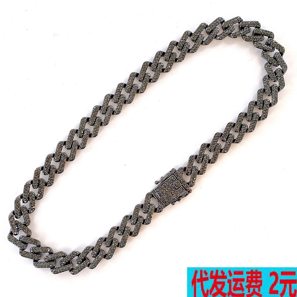 国境を越えた欧米のヒップホップHiphop銃黒マイアミスキューバチェーン13mmグレー合金満ドリルネックレスアクセサリー