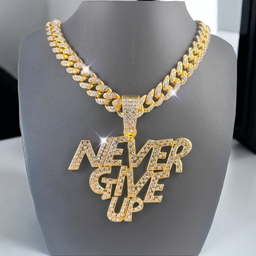 クロスボーダー合金アルファベットNEVERGIVEUPパンク風ペンダント欧米ヒップホップ男性フルドリルきれいなスキューバチェーン