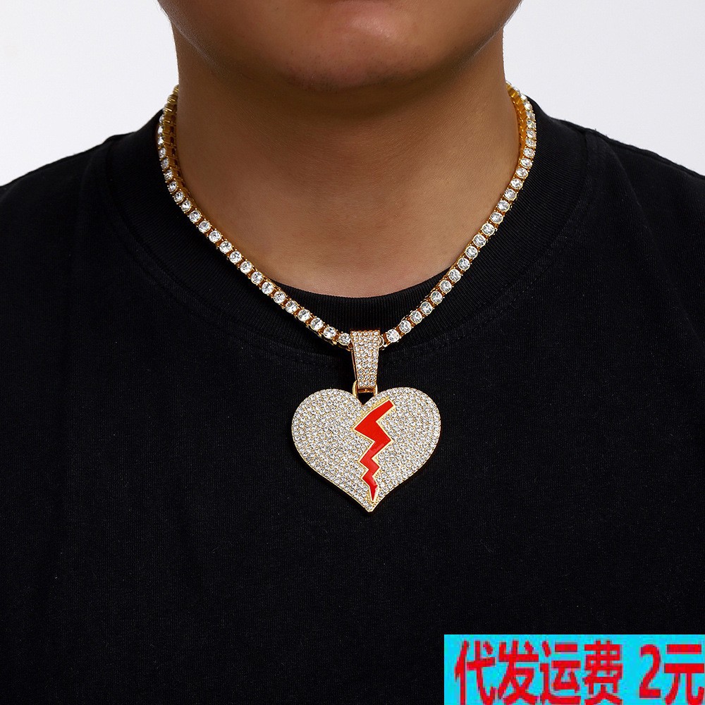 国境を越えたヒップホップ新製品愛裂心満ドリル合金のネックレスはヒップホップスキューバチェーンのネックレス男性のネックレスです