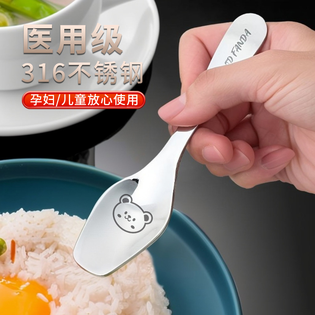 子供の 316L スクエアスプーン家庭用ベビー深めの食べるスプーンケーキデザートスプーン漫画ベビートレーニング食べるスプーン