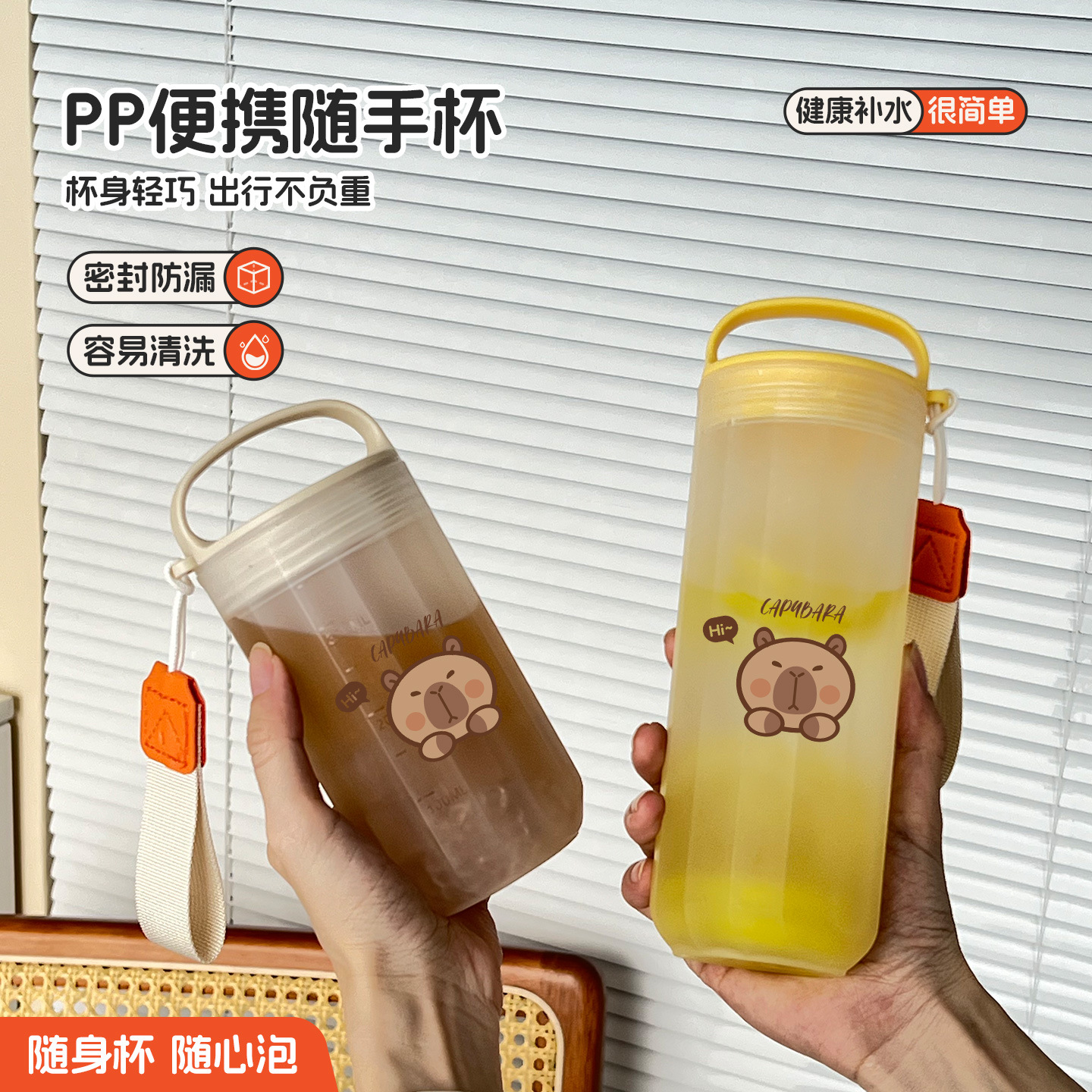 卡皮巴拉手提多用杯卡通夏季随手杯车载水杯办公室豆浆咖啡早餐杯